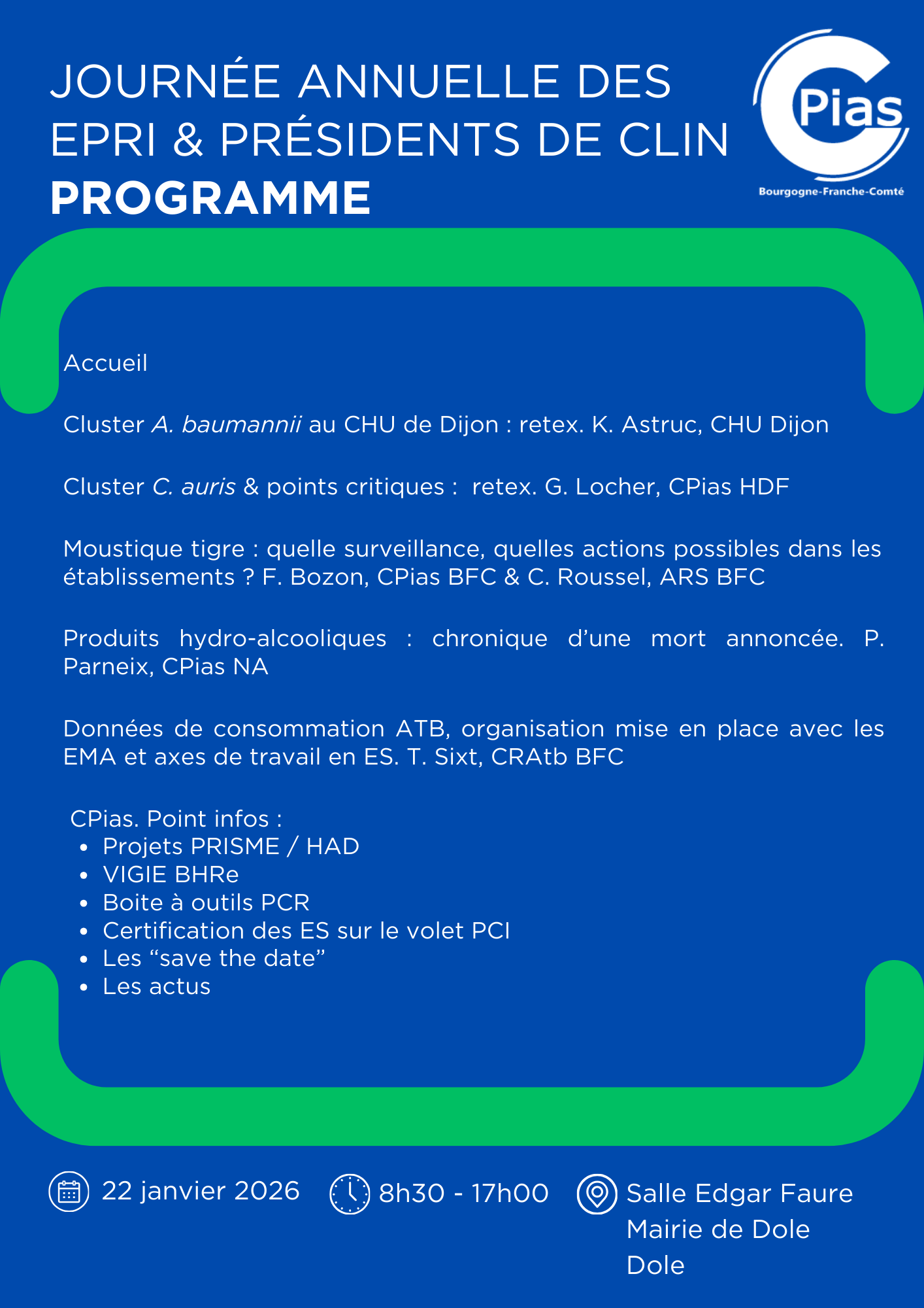 - Lieu : Salle Edgar Faure de la Mairie de Dole (Place de l'Europe, 39100 Dole)